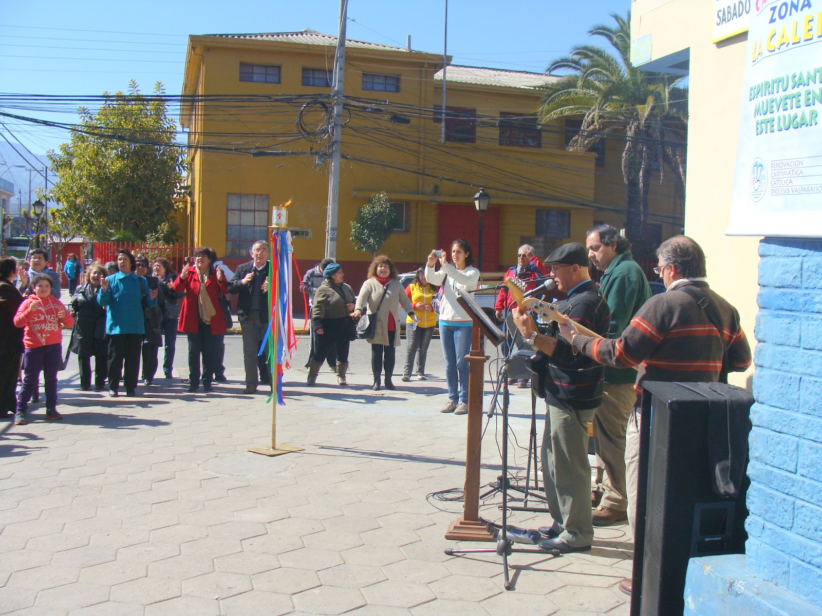 Terminada la eucaristía, la asamblea presente entonó y danzó con alabanzas. Luego, salieron a la calle con la antorcha llegando hasta la Plaza de Armas de Quilota donde continuaron las alabanzas acompañados por músicos jóvenes (Rafael González y Alejandra Vargas).